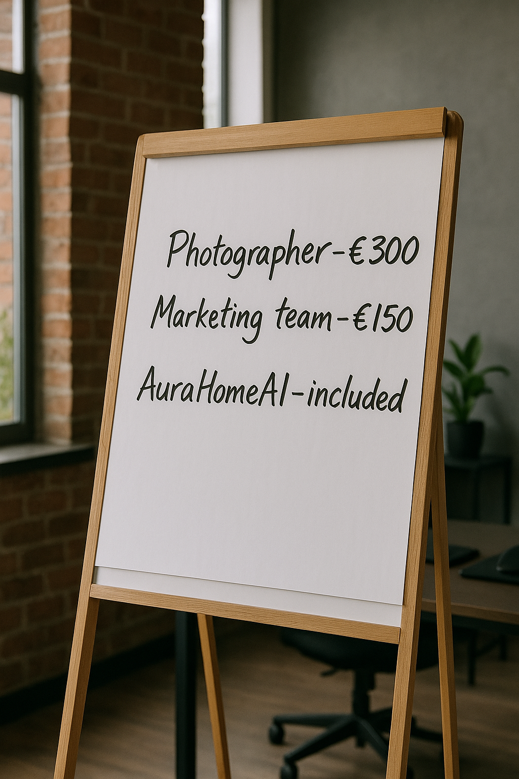 Upload your property photos and let Aura turn them into professional-grade images, videos, and listing texts.